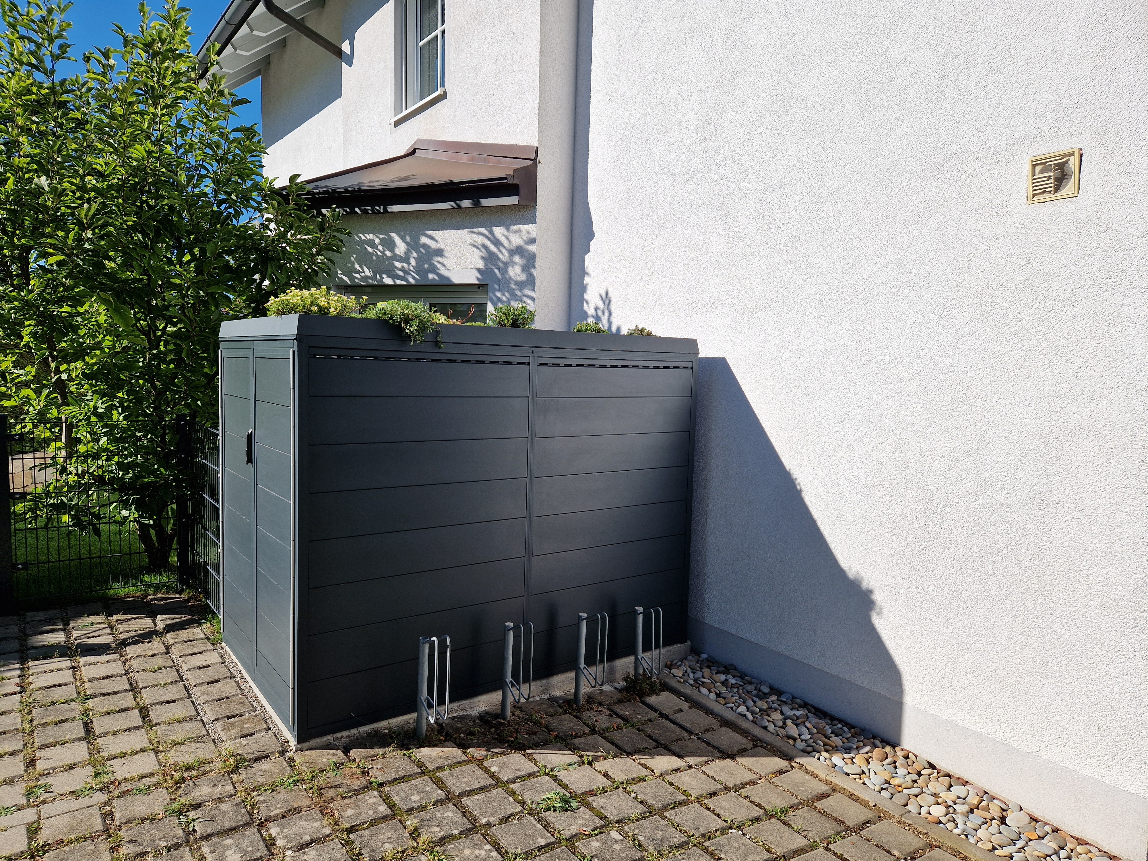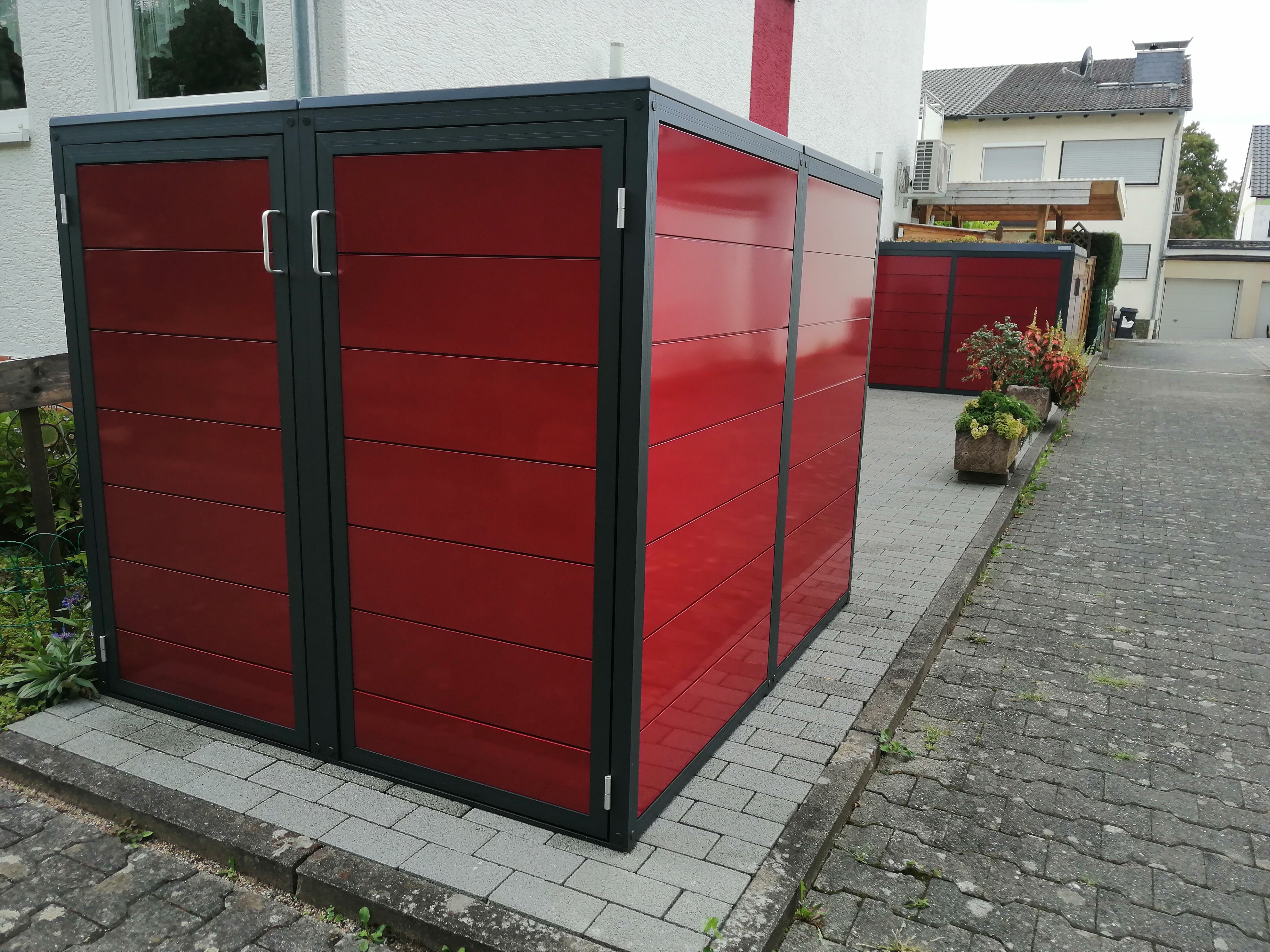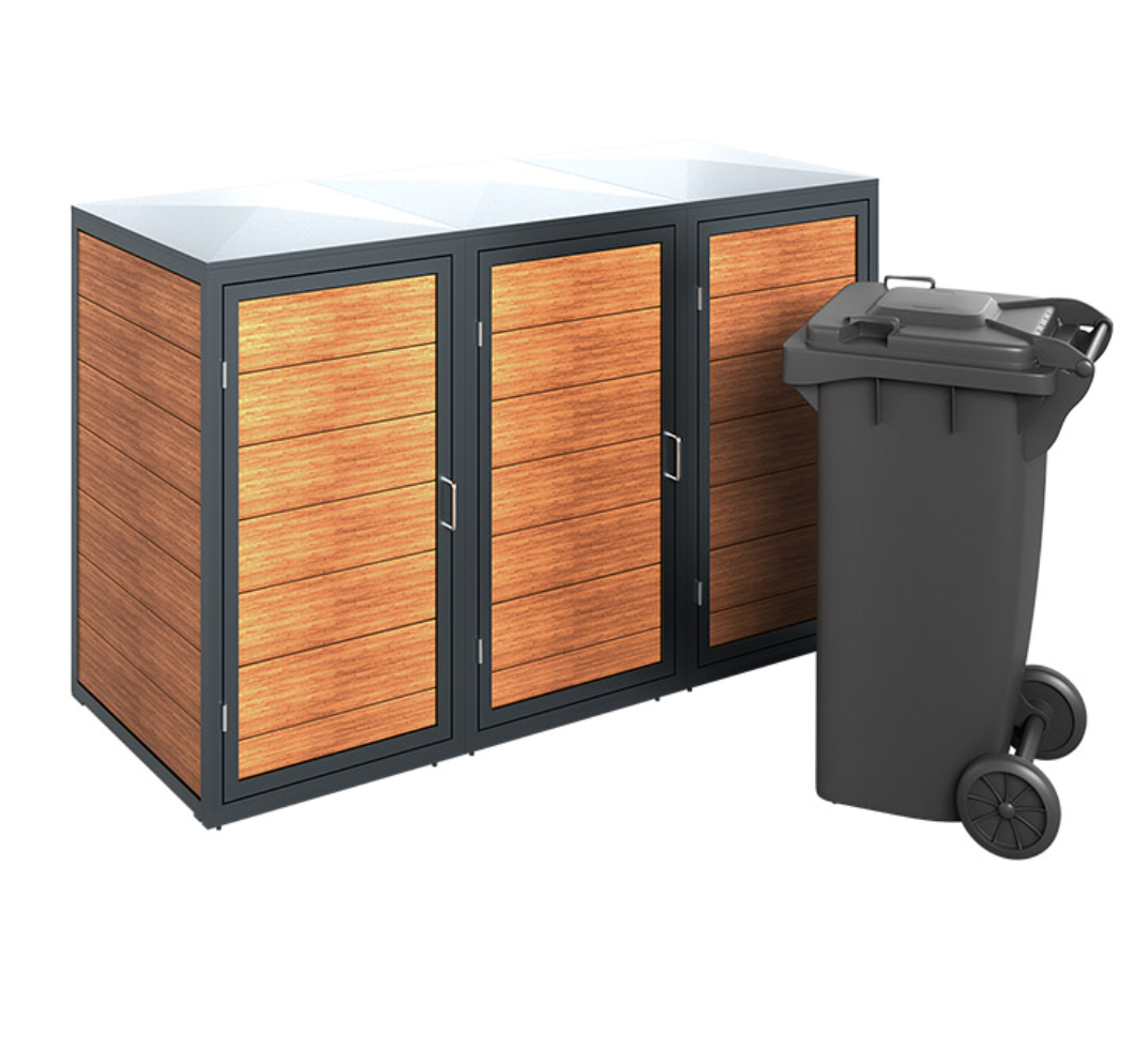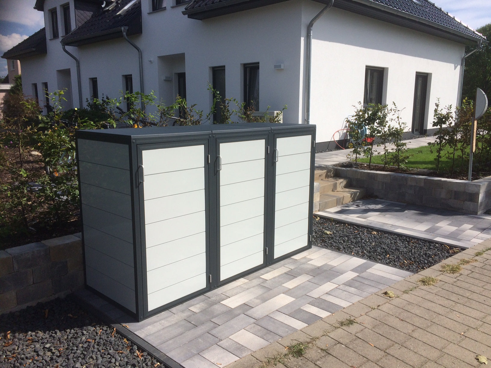 Müll rausbringen wird zum Privileg. Gestalten Sie Ihre Box kreativ oder halten Sie eine klare ästhetische Linie in Abstimmung mit den Fahrradboxen - Es kann so schön sein hässliches zu verbergen.