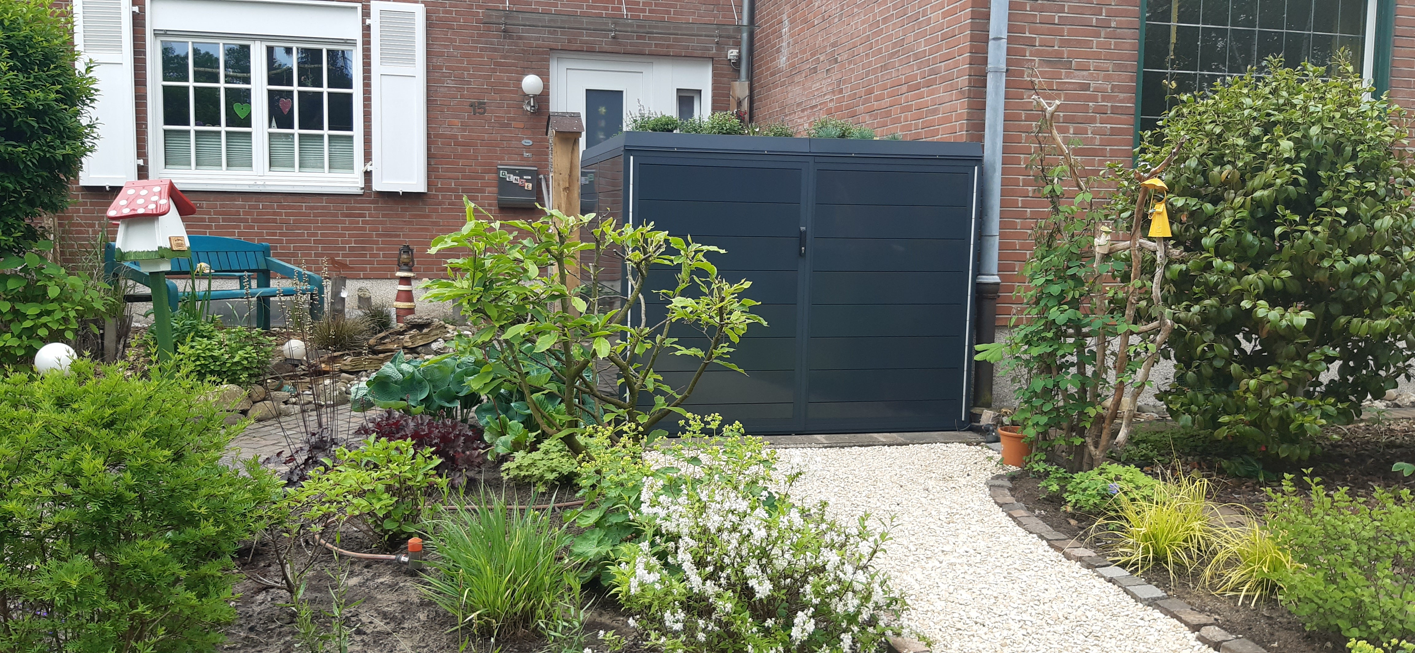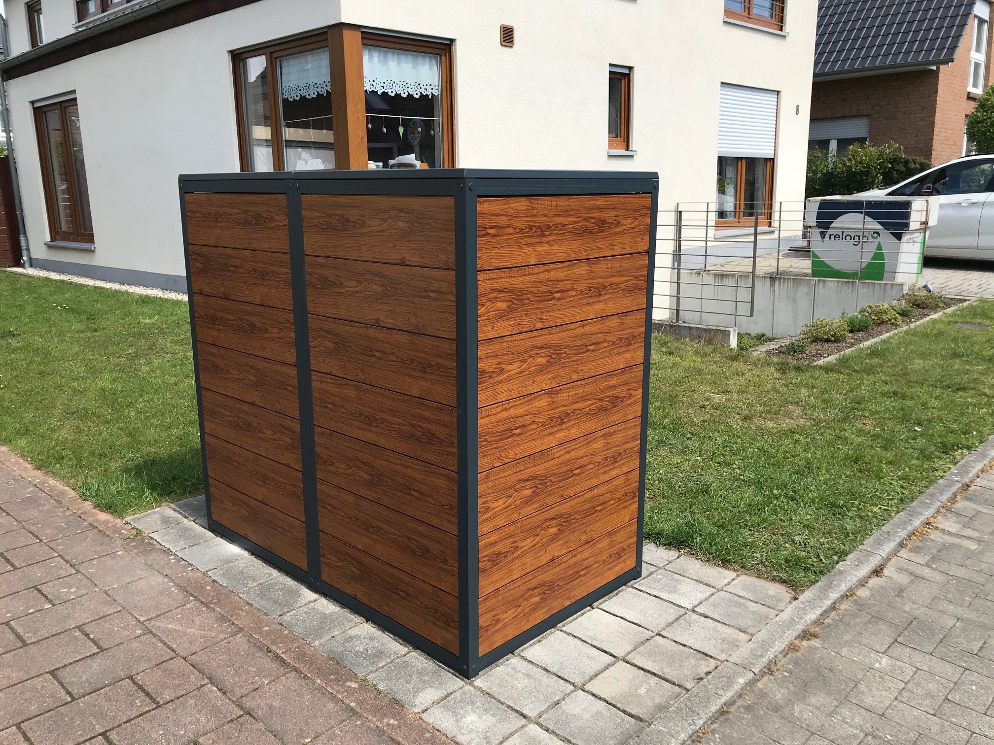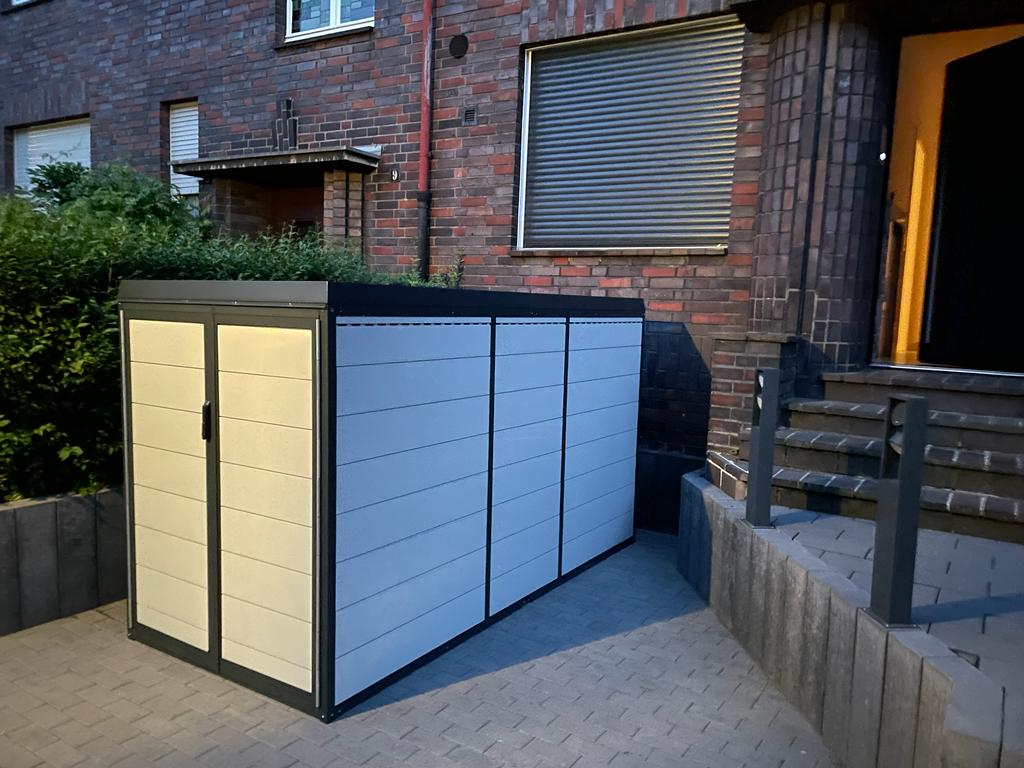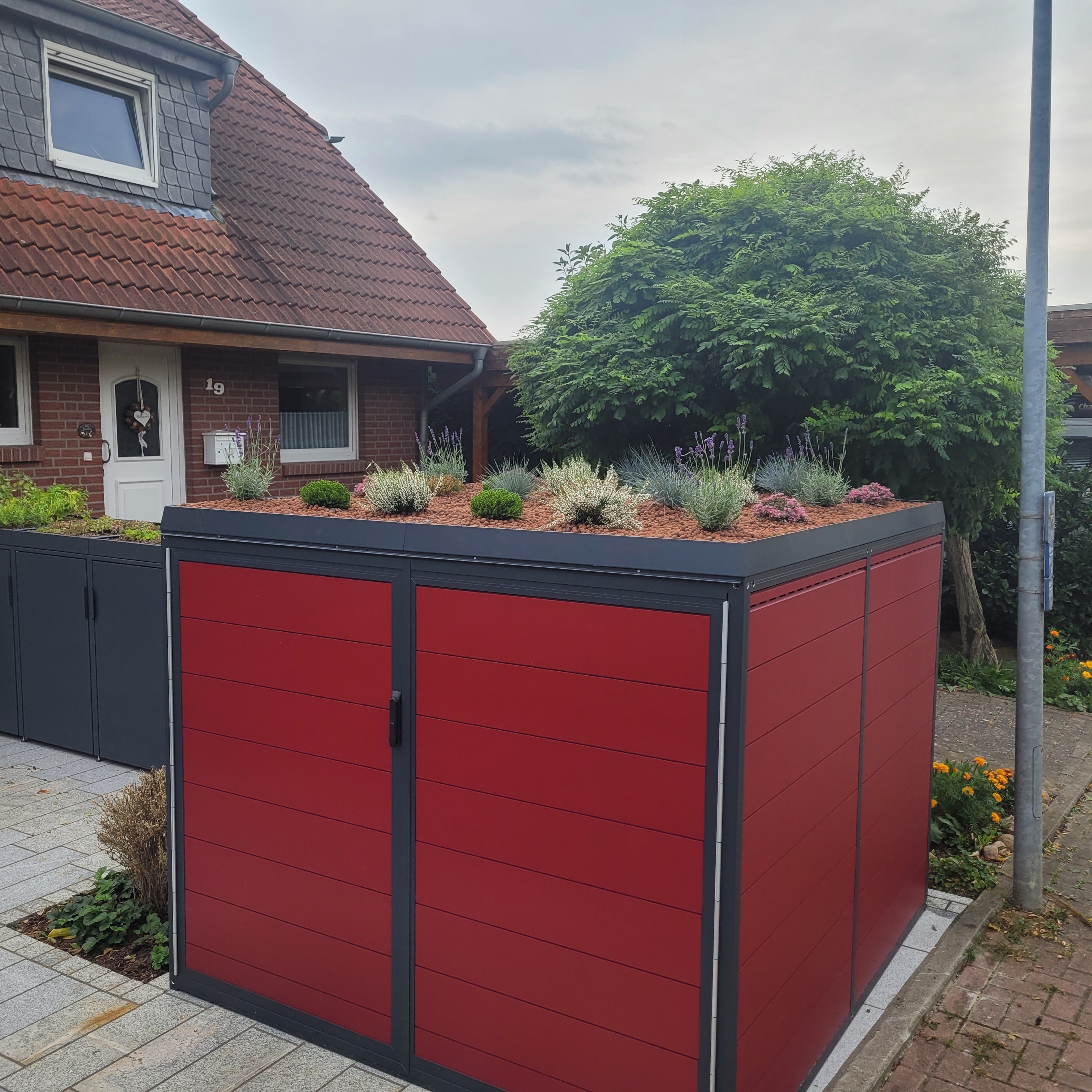 Müll rausbringen wird zum Privileg. Gestalten Sie Ihre Box kreativ oder halten Sie eine klare ästhetische Linie in Abstimmung mit den Fahrradboxen - Es kann so schön sein hässliches zu verbergen.