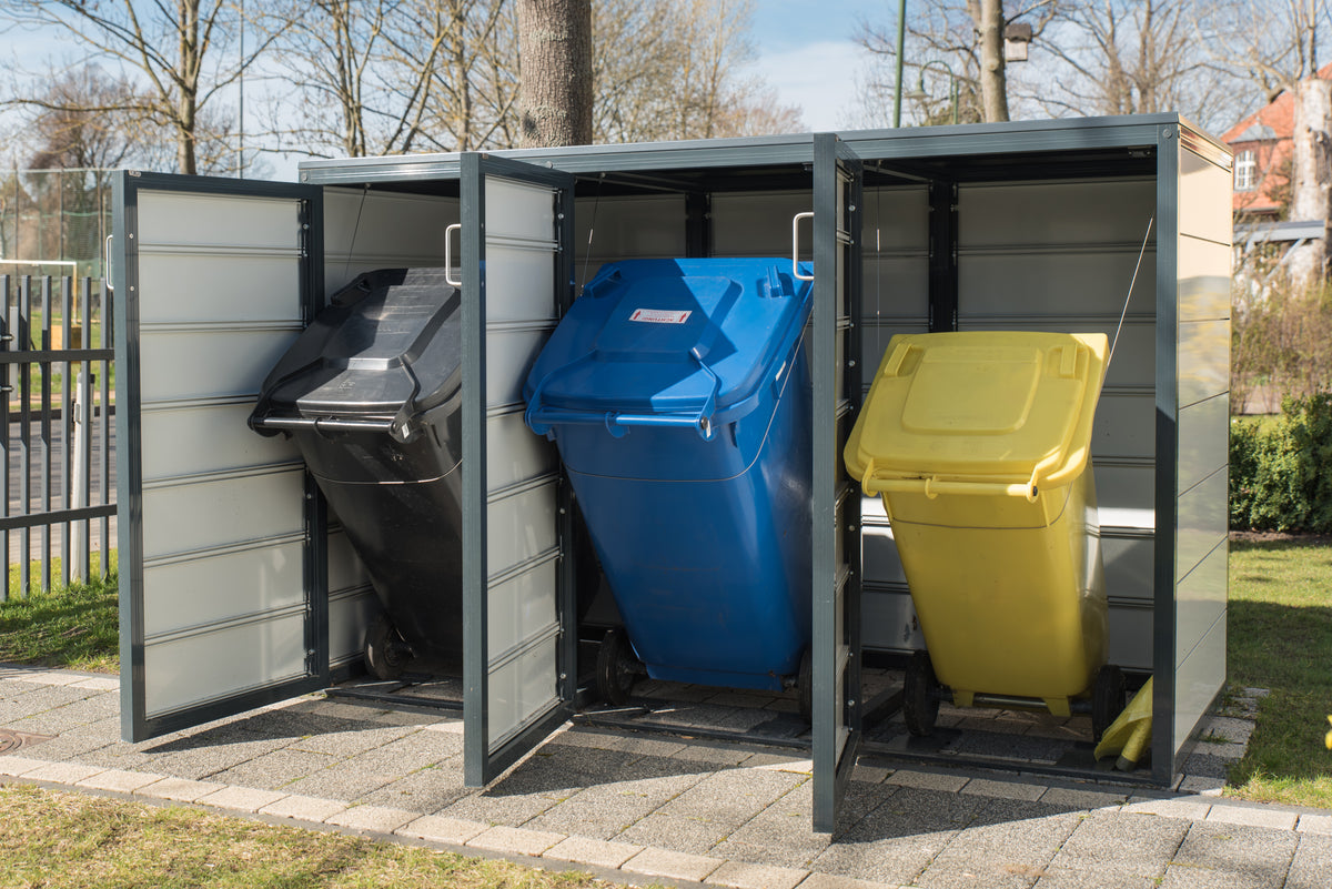 Müll an sich ist ja meist hässlich genug. Warum nicht mal die Tonnen unter einer schönen Verkleidung aus hochwertigen Aluminium-Profilen verbergen?
