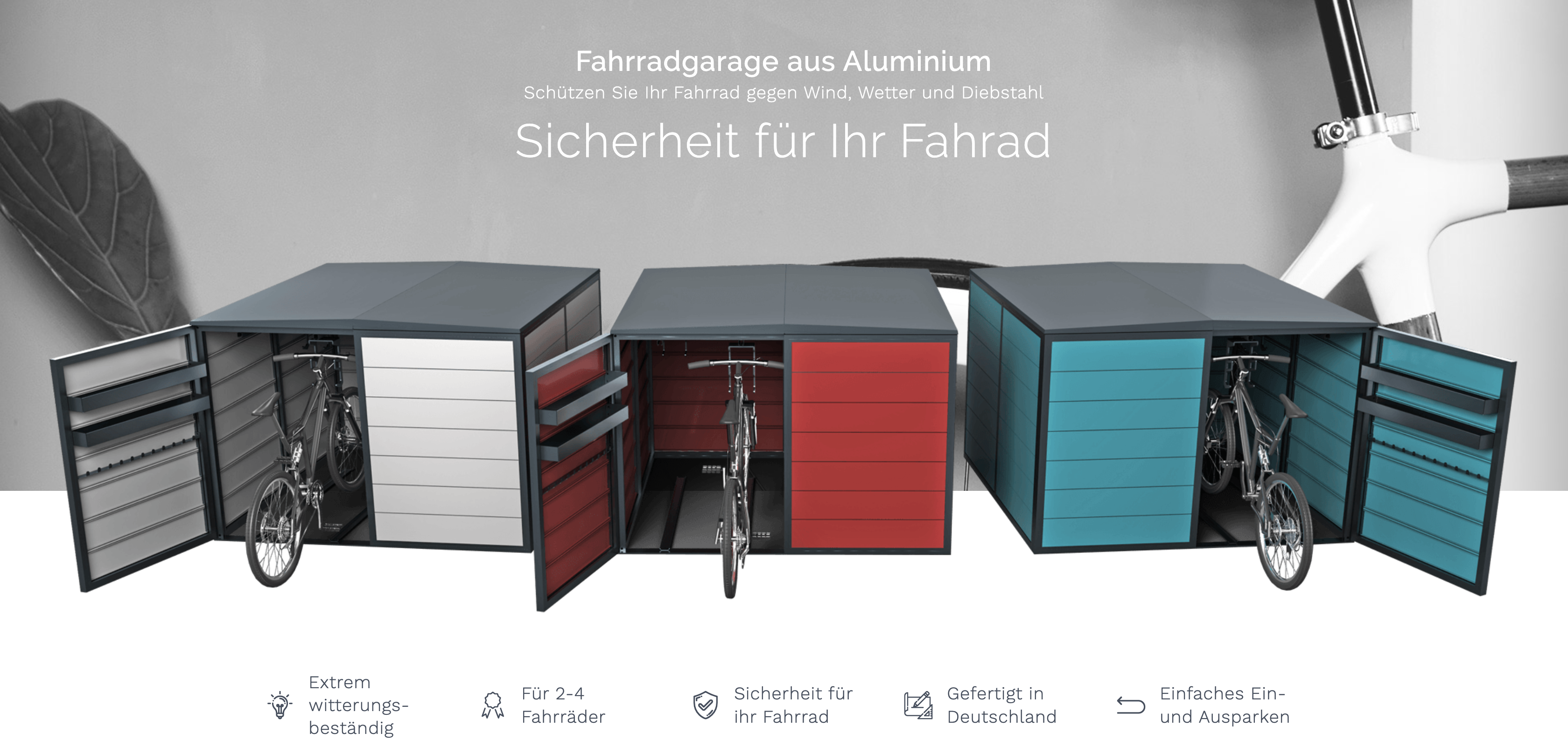La construction intelligente du garage à vélos en aluminium vous permet de guider votre vélo ou votre cheval de course dans le box comme si vous teniez une rêne. Tout est optimisé pour une utilisation facile.