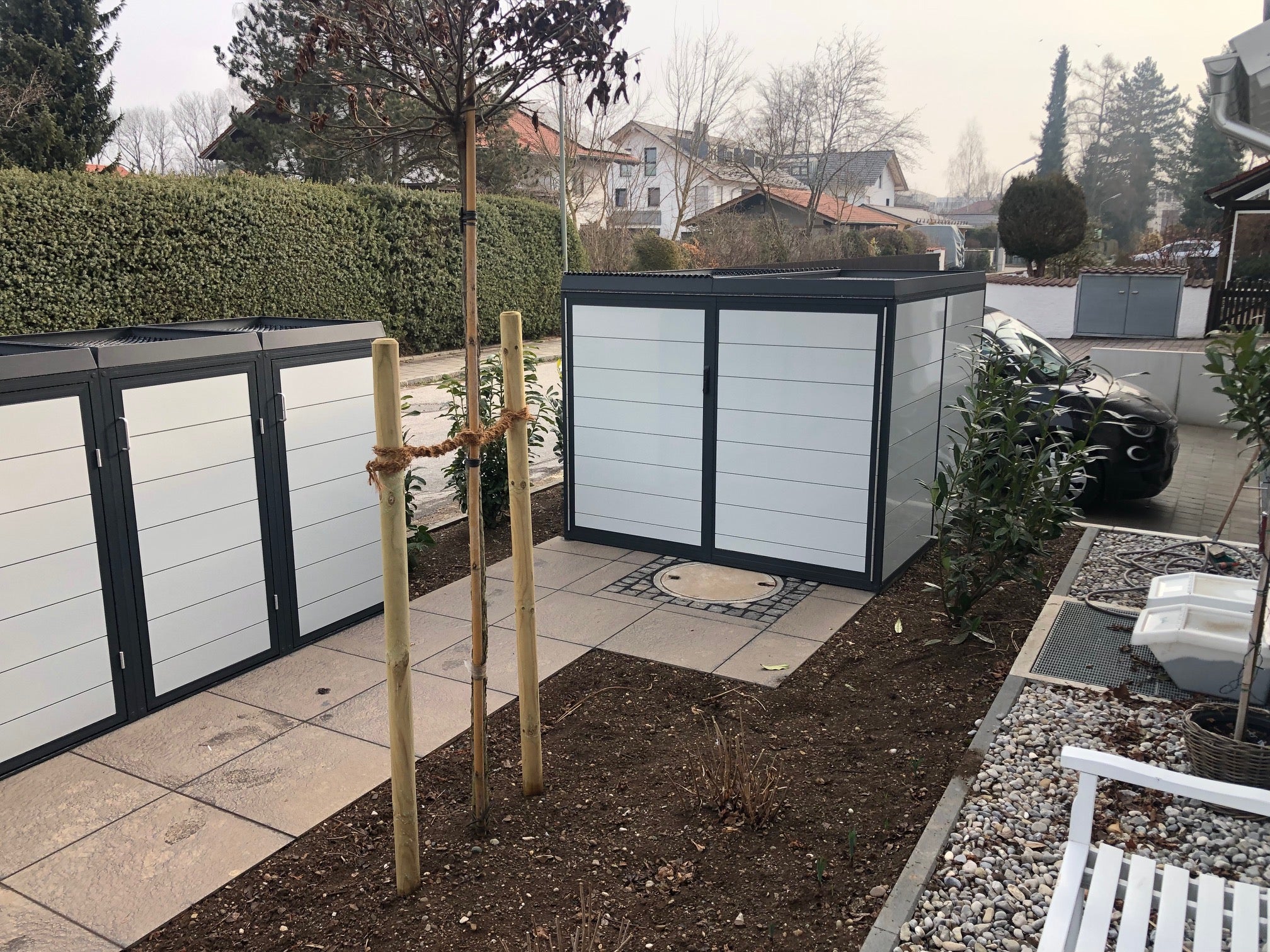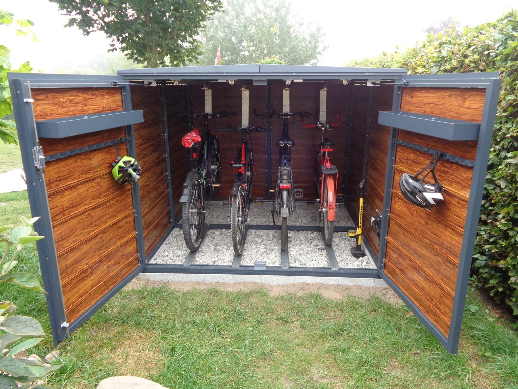 Vous trouverez ici des options de stockage sans souci pour votre vélo. En plus d'une protection complète contre les intempéries, vous prévenez également particulièrement le vol. La porte est sécurisée par une serrure à barre robuste avec un culbuteur. Les compagnies d'assurance classent cette technique de fermeture comme comparable à une porte de cave en termes de sécurité. Ainsi, vos vélos sont assurés dans un coffre fermé à clé grâce à votre assurance inventaire du ménage.