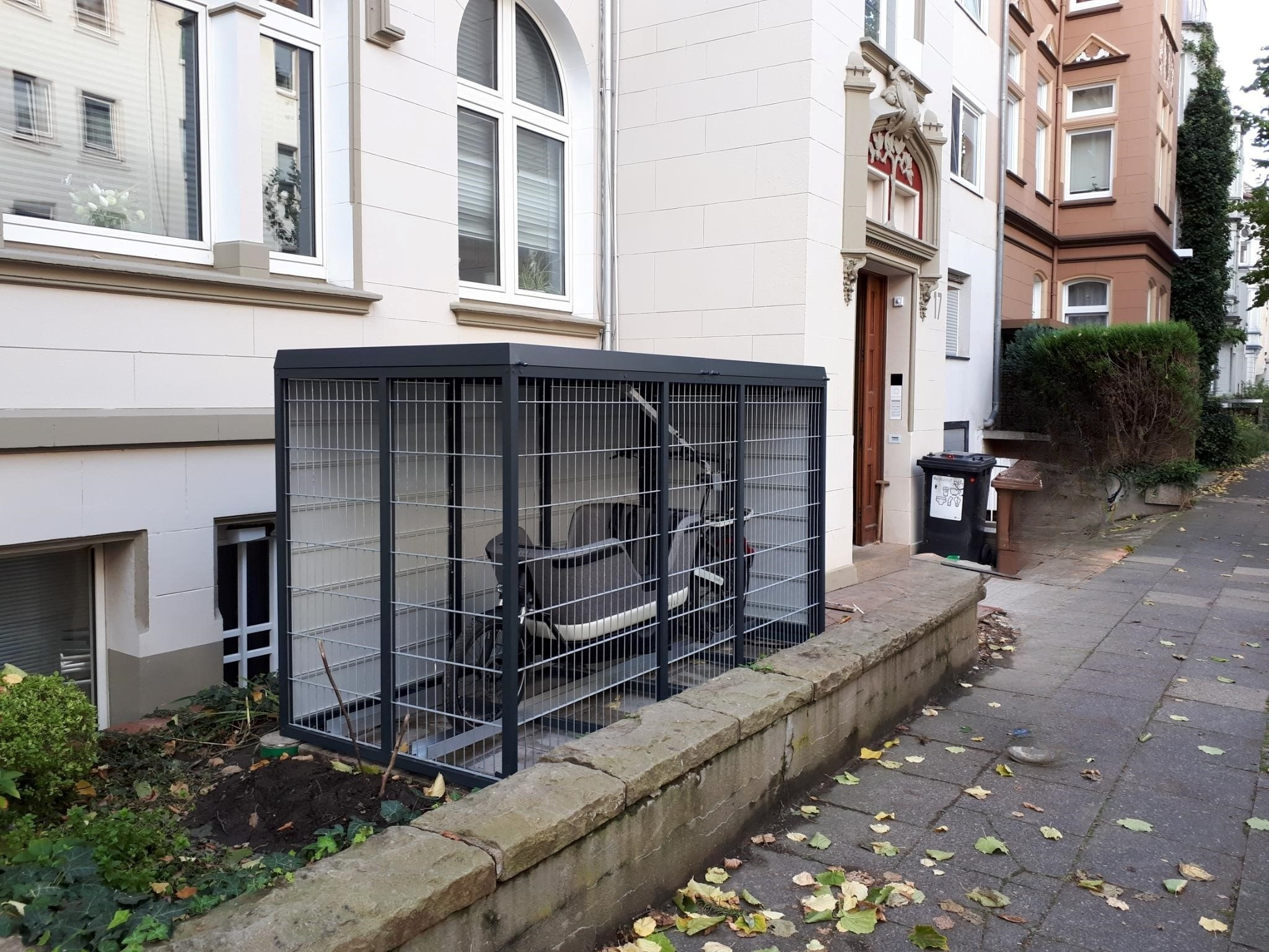 Vous trouverez ici des options de stockage sans souci pour votre vélo cargo. En plus d'une protection complète contre les intempéries, vous prévenez également particulièrement le vol. La porte est sécurisée par une serrure à barre robuste avec un culbuteur. Les compagnies d'assurance classent cette technique de fermeture comme comparable à une porte de cave en termes de sécurité. Votre vélo cargo est donc assuré dans un coffre fermé à clé grâce à votre assurance inventaire du ménage.