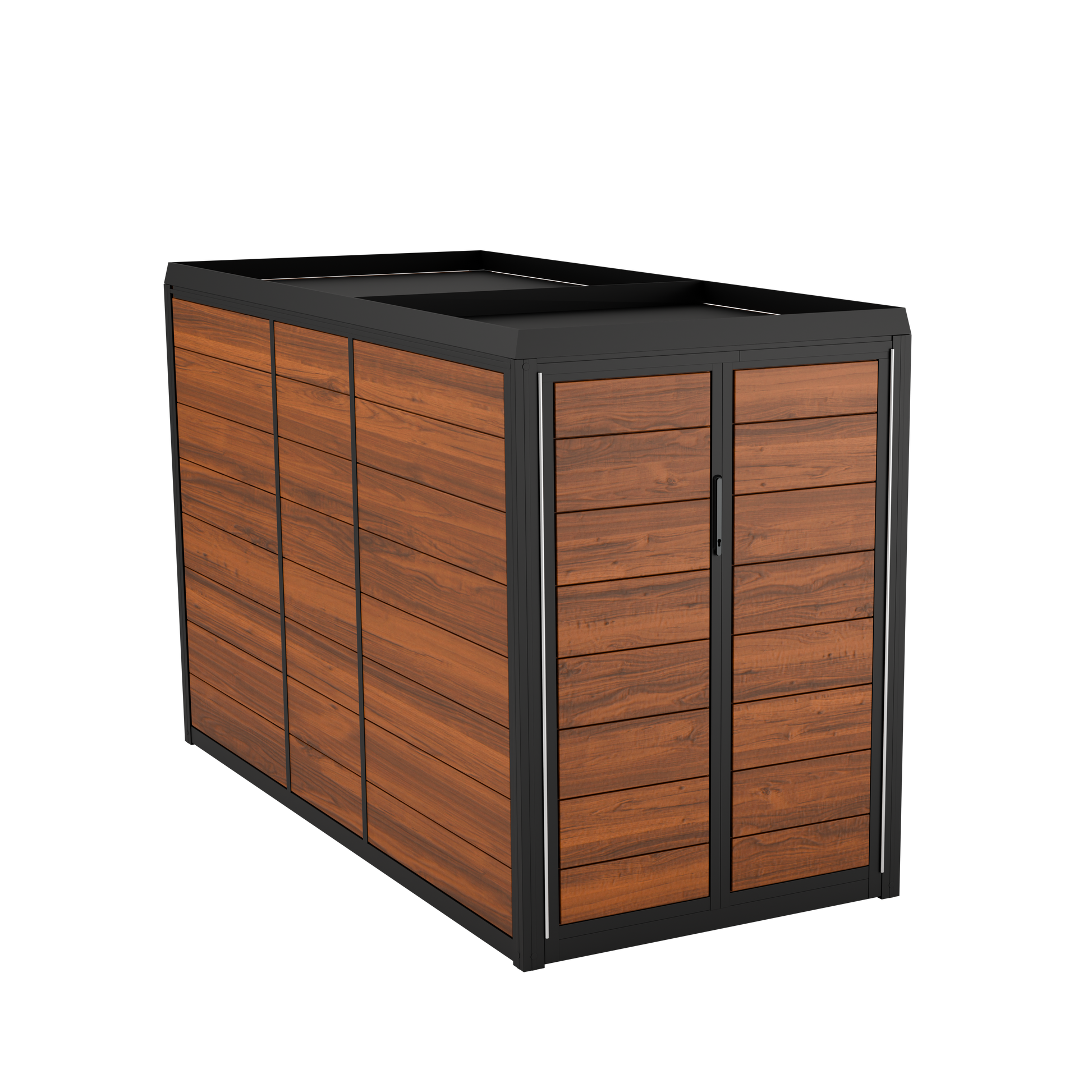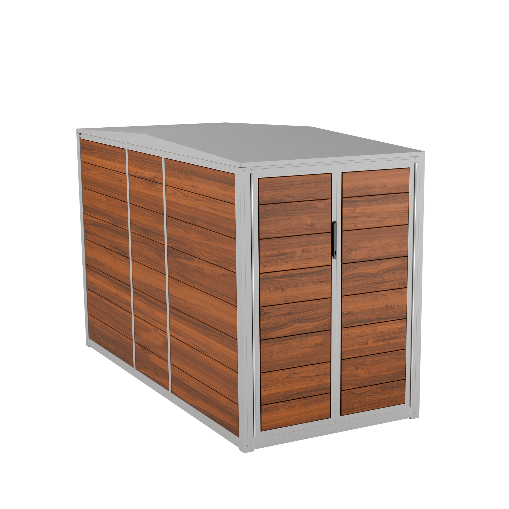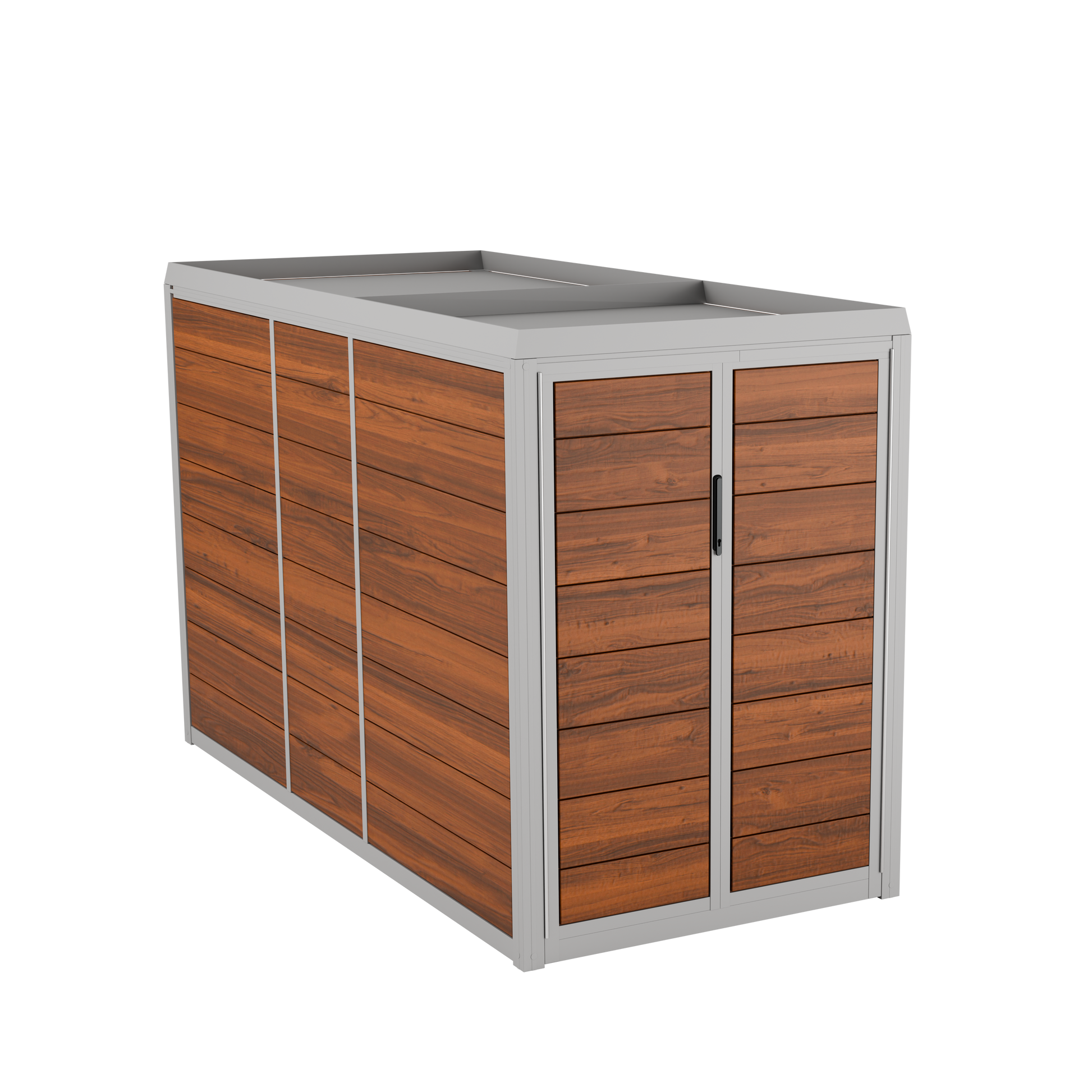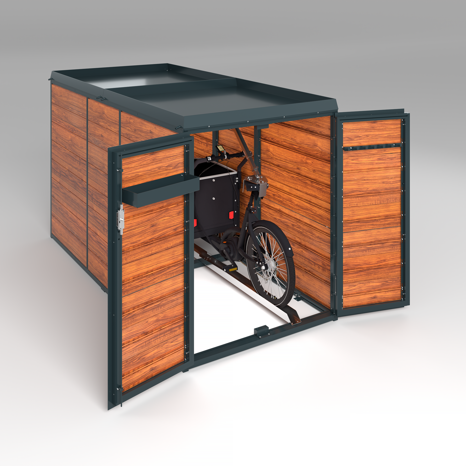 Das Design macht diese Lastenradgarage zu einem echten Hingucker vor Ihrem Haus. Verschiedene Oberflächendesgins, kombiniert mit der Sicherheit einer Garage, bieten jedem Lastenrad eine sichere Unterstellmöglichkeit.